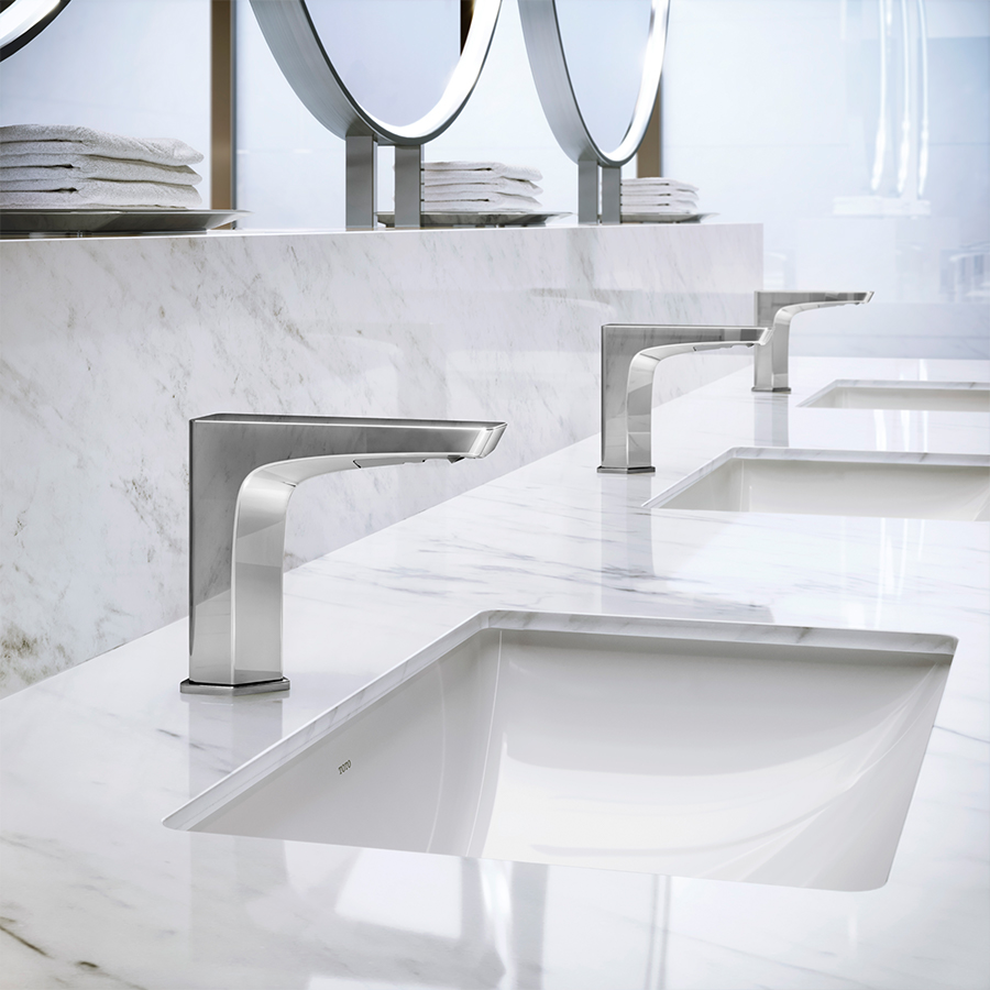 酒店客房也使用了相同的設(shè)計(jì)并采用非接觸式感應(yīng)水嘴。